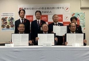 鳥取中央郵便局など県東部の郵便局10局と11月20日合意書を締結し、郵便局の窓口に募金箱を設置し、共同募金運動に連携して取組んでいただくこととなりました。