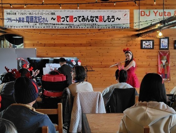 「つながり・結ぶ・レクリエーション事業」として、フルートとピアノの演奏会を開催しました。同じフロアでの演奏を体感でき五感が刺激され、楽しいひと時を過ごすことができました。会場が一つになって盛り上がり、子どもたちも笑顔があふれていました。会員参加者に有意義な時間を提供できたことに感謝します。ありがとうございました。